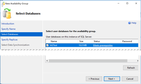 The easiest way to create the Ags is to have a database to synchronize. The BizTalk Databases are created while configuring which is a bit late for SQL. Create an empty database on each database server instance, in my case AGTest. You need to take a backup of each of them before running the scripts. The upside of this is that you will be able to test the AGs before starting to configure BizTalk.